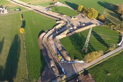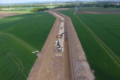 Eine Maßnahme, die zahlreiche Herausforderungen mit sich bringt, wie Robert Ostendorf, Vertriebsleiter und Prokurist bei Heitkamp und Hülscher bestätigt: Insgesamt vier Unternehmen mit rund 70 Mitarbeitern sind an den Bauaufgaben beteiligt. Bis zu 18 Kettenbagger kommen dabei zum Einsatz. Das Bauprojekt kreuzt den Westwall und insgesamt sieben Bunkeranlagen aus dem zweiten Weltkrieg. Dabei sind die Baustellenteams angewiesen, auf mehr als 600 Anwohnerbelange, wie Zufahrten, Zeitenabsprachen und Übergaben, Rücksicht zu nehmen und schonend mit den dort befindlichen Ackerflächen umzugehen. Die Arbeiten finden allesamt unter archäologischer, ökologischer und bodenkundlicher Aufsicht statt.
