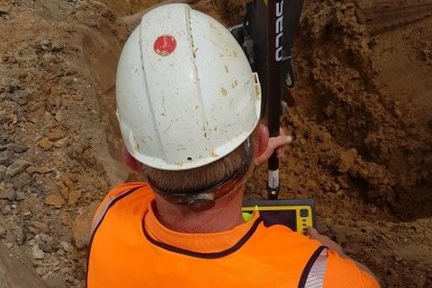 So werden die 38 Bauabschnitte beispielsweise mit Drohnen beflogen; die Bilder dokumentieren den aktuellen IST-Stand des gesamten Bauvorhabens. Dazu kommt ein modernes Konfliktmanagement, das die bestehenden Pläne für das Kreuzen der zahlreichen Leitungen mit dem IST-Zustand abgleicht und so eine optimale Arbeitsvorbereitung ermöglicht. Unterstützt wird die ARGE hierbei von dem Ing. Büro H+S Ingenieurplanung im Kanalbau aus Borken. Dabei werden detaillierte Aufnahmen vor Ort immer rechtzeitig vor Beginn einer neuen Bauaufgabe erstellt und anschließend in die dreidimensionale Planung eingespielt und auf die Maschinen transferiert. Die Poliere vor Ort sind somit immer mit dem tatsächlichen IST-Verlauf der zu kreuzenden Leitungen vertraut und können Konflikte zuverlässig ausschließen, bevor diese entstehen. Der tägliche Gebrauch von Roverstäben durch die Poliere reduziert den Einsatz von Vermessungsingenieuren auf ein Minimum. Allen beteiligten Partnern steht last but not least ein gemeinsamer, stets tagesaktueller Datenpool zur Verfügung, der den Unternehmen sämtliche Informationen zum Projekt transparent bereitstellt.